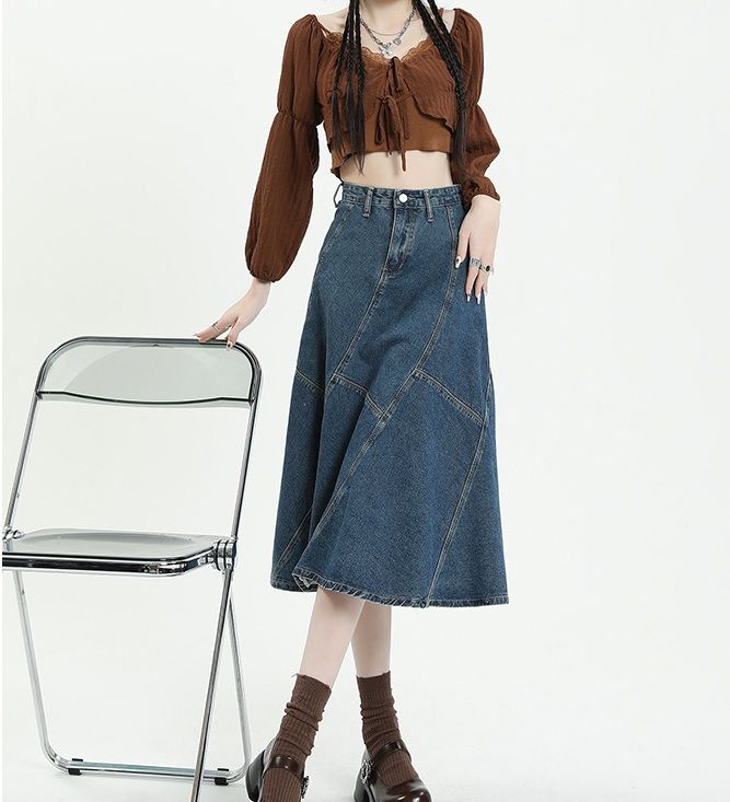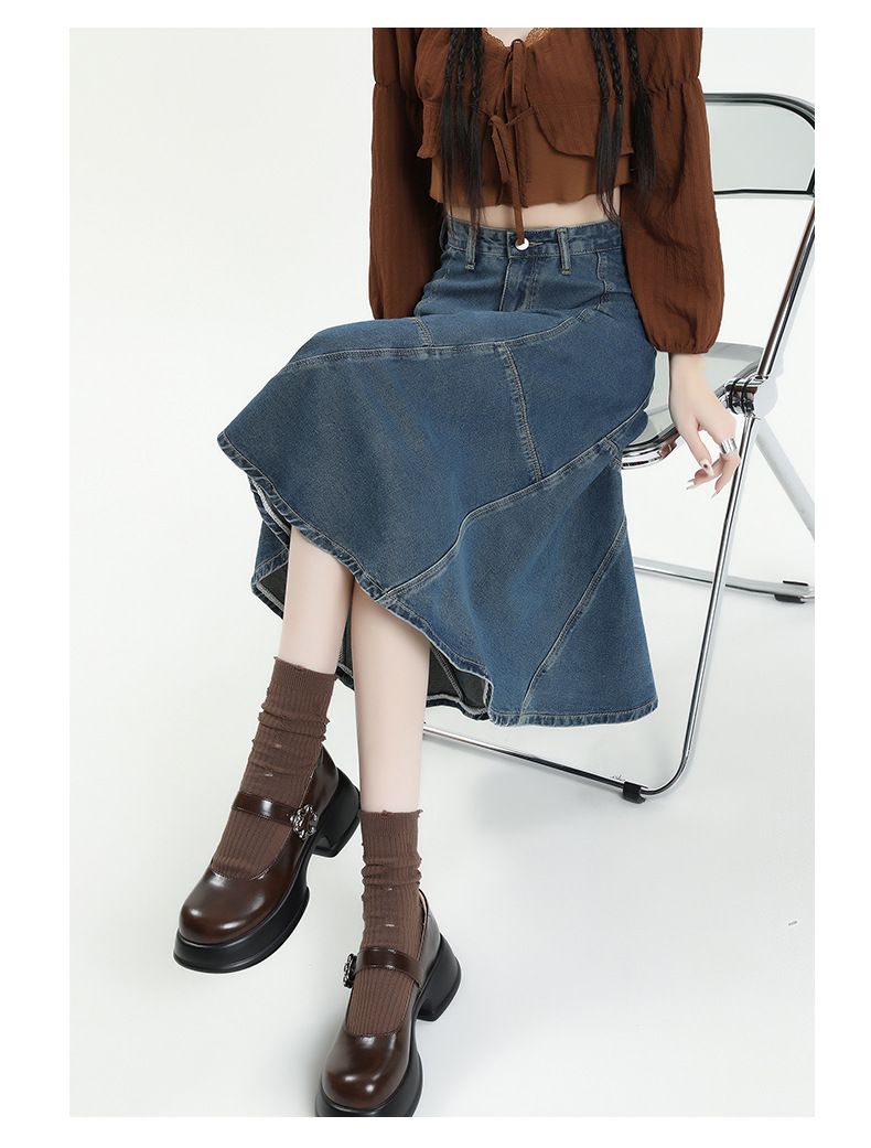 Jeansrock für Damen, verwaschener Fischschwanz-Jeansrock, Midirock