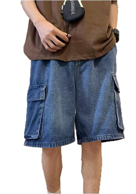 Men's Y2K Baggy Jean Shorts Hip Hop Cargo Pants Denim Shorts Streetwear