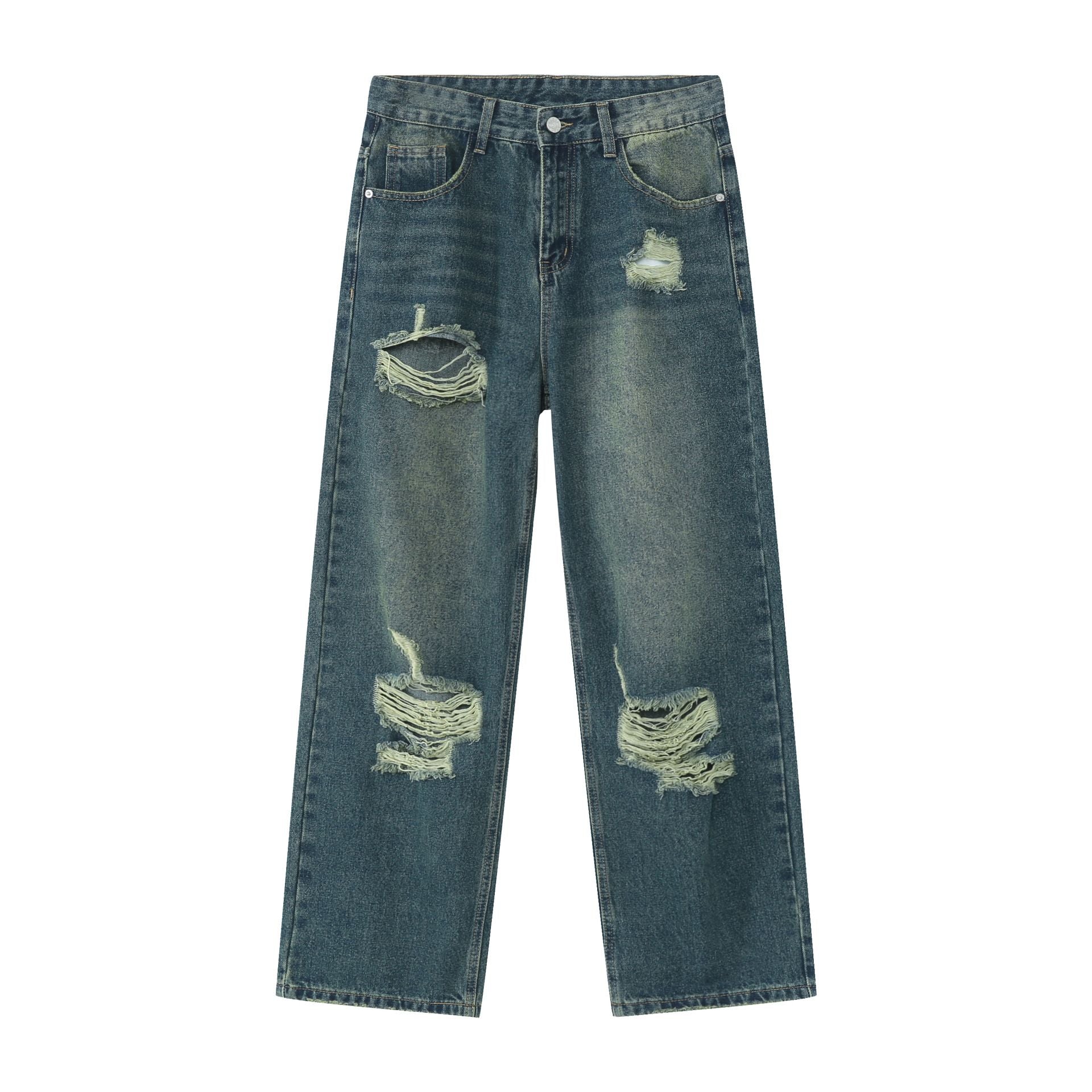 Baggy Jeans for Men Ripped Straight Leg Pants Y2K Distressed Denim Streetwear