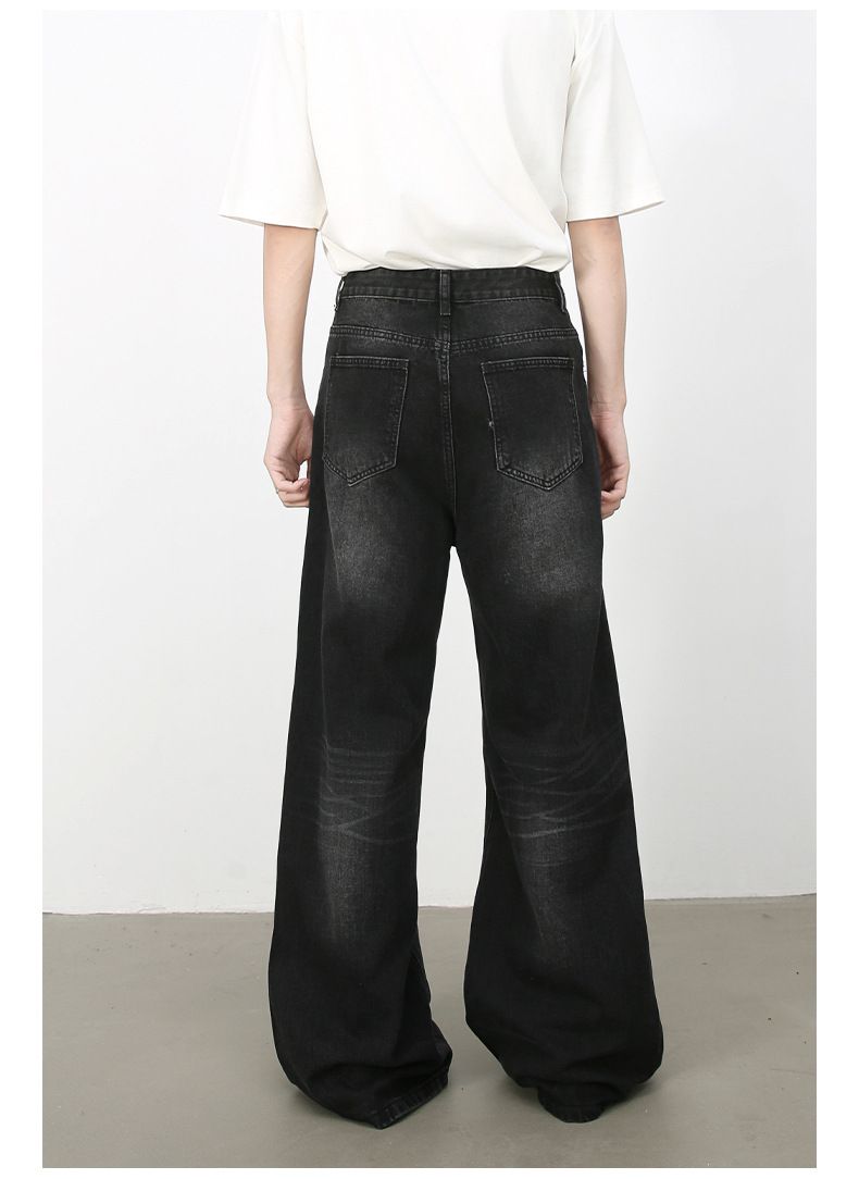 Hip Hop Baggy Jeans for Men Ripped Wide Leg Loose Fit Denim Pants Streetwear