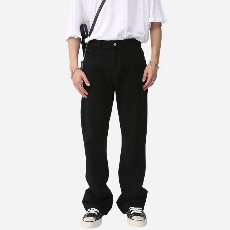 Designed for modern streetwear with a retro Y2K edge, these men’s slim bootcut jeans feature a mid-rise waist, subtle flare, and distressed vintage wash. Crafted for comfort and structure, they offer a slim fit through the thigh with a relaxed bootcut opening that elongates the leg line.